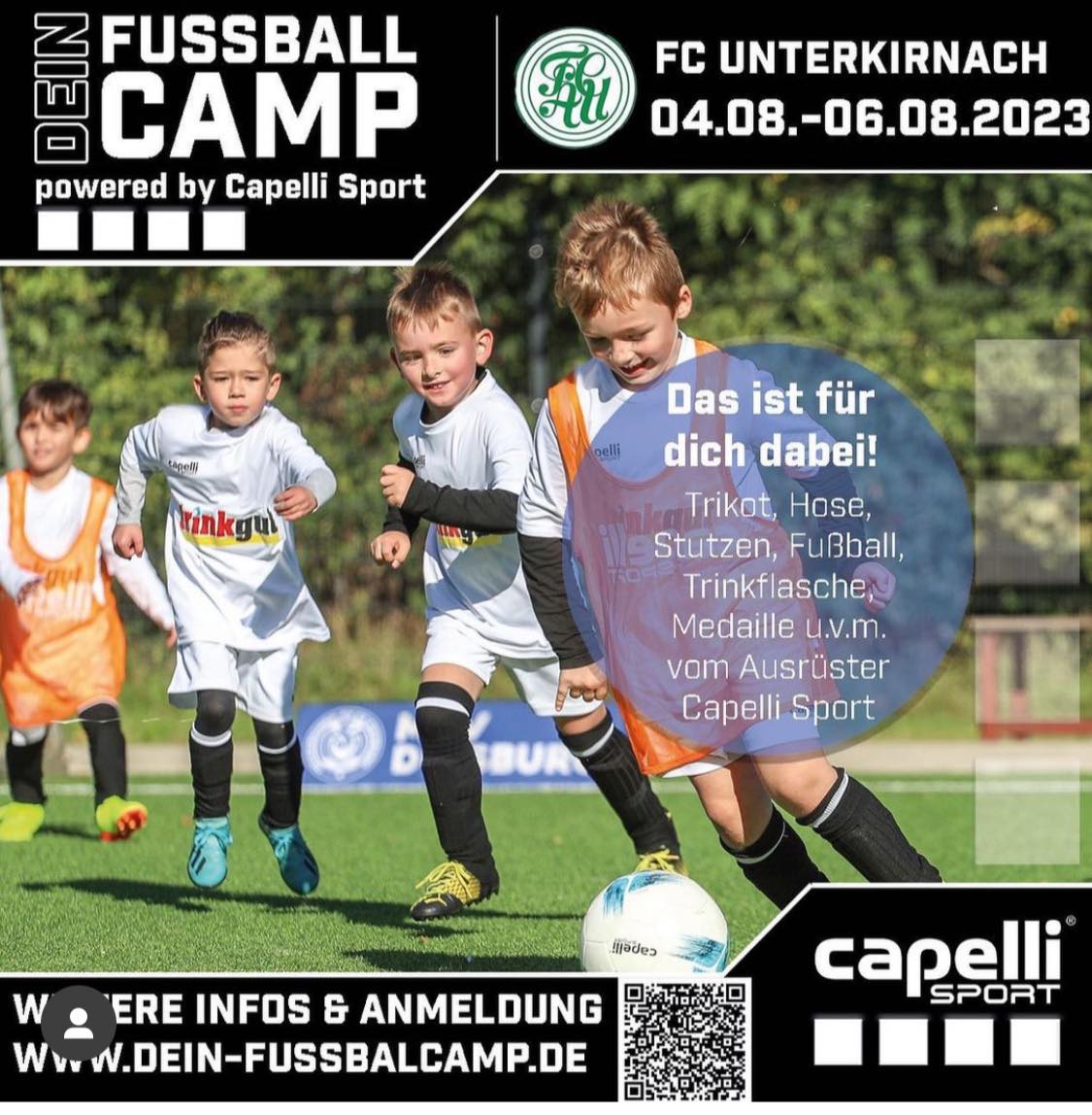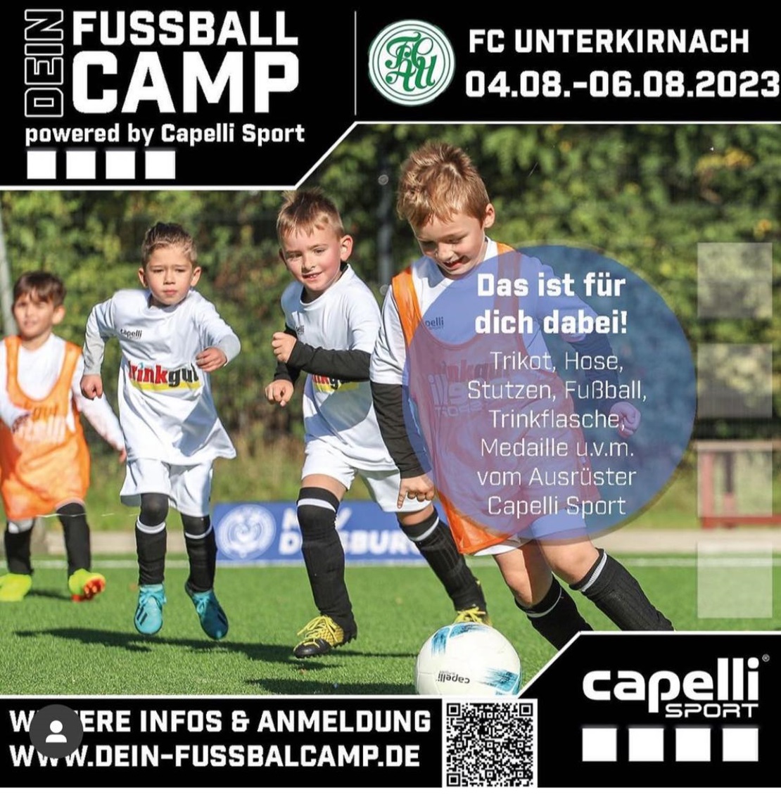 Für den Sommerferien macht die Jugendabteilung dem Fußballnachwuchs aus dem Ort und den Umlandgemeinden mit einem Fußballcamp ein tolles Angebot. Jungs und Mädchen im Alter von 6 bis 16 Jahren können sich zum Fußballcamp auf dem Gelände des FC Unterkirnach anmelden. Dieses findet seit 16 Jahren immer in der ersten Augustwoche statt und die Teilnehmer werden drei Tage lang unter sachkundiger Anleitung trainiert. Das Angebot wird sehr gut aufgenommen und jedes Jahr kommen ca. 50 – 60 Kinder um sich bei den Übungen fortzubilden.